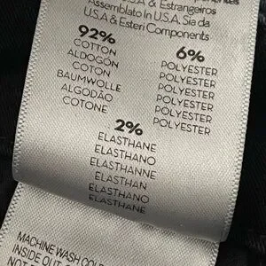 92% cotton, 6% polyester, 2% elastane