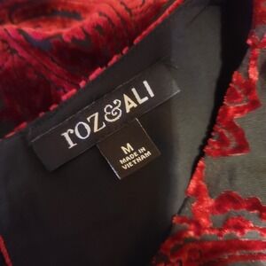 EUC Roz & Ali Burnout Velvet Red Black Paisley Med Sleeveless Whimsigoth Top