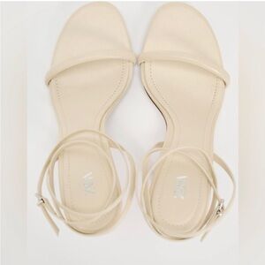 Zara High Heeled Tubular Strap Leather Sandals- Cream