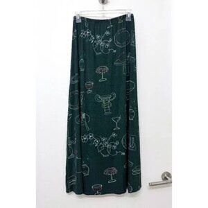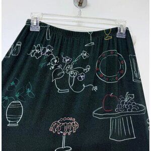 Lisa Says Gah Lauren Midi Skirt in the Set the Table - Tablescape print (dark forest green color w/ food appetizer print)