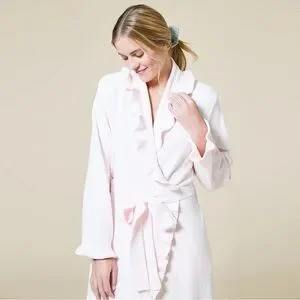 Experience ultimate comfort with this Ruffle Chenille Robe in a delicate soft pink. Perfect for lounging, this robe offers a cozy and stylish fit.