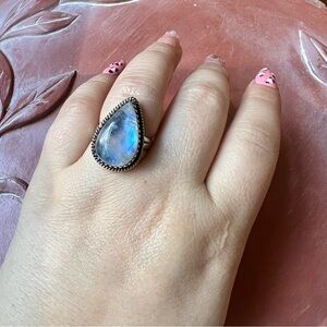 925 Sterling Silver Moonstone Teardrop Ring Size 8 Boho