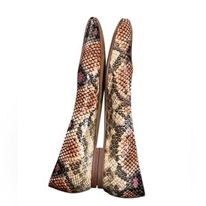 Vince Camuto Bicanna brown pink snake print leather square toe ballet flats