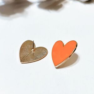 Orange heart stud earrings in gold tone
