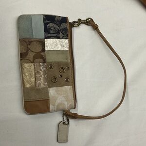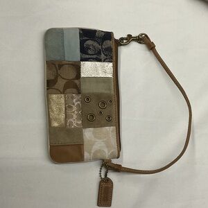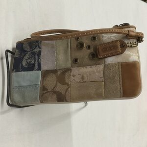 Elegant Coach wristlet with a patchwork of textures. Features a mix of neutral shades. Coach Y2K 🤎💙 Multicolor Patchwork Design Wristlet EUC 🤎💙 Ideal for any occasion.