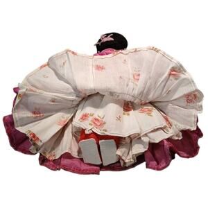 **This doll has a pink dress with floral petticoats. Some of my pictures show as red. But I see the color as pink.**