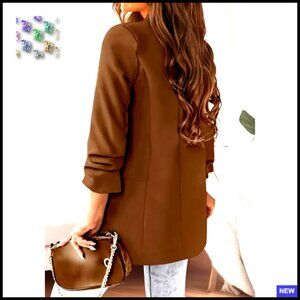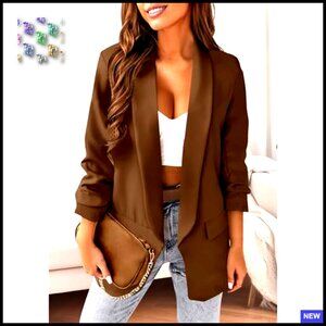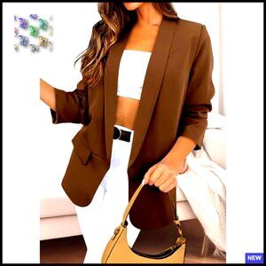 Oversized Blazer Open Front Lightweight Polyester Business Casual Chic
