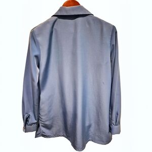 Beautiful Bedford Fair Lifestyles two-piece blouse set featuring a silky light blue long sleeve button-up top with matching sleeveless shell. Classic, polished look perfect for work, church, or dressy casual outfits. Wear together or separately for multiple looks.
