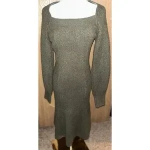 Green Long Sleeve Maxi Sweater Dress In Women’s Medium