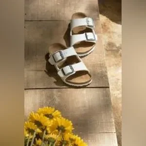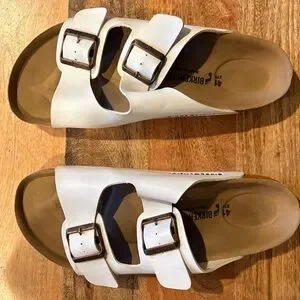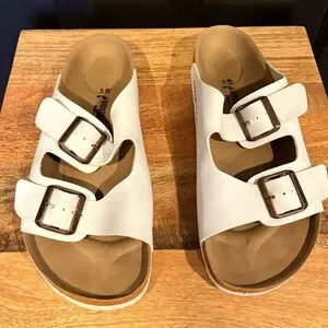 Classic white sandals with adjustable straps. Perfect for comfort and style. Size 41 (US size 10-10.5).