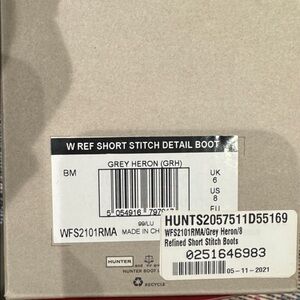 Stylish Hunter boots in gray. Features tan accents. Perfect for rainy days. Comfortable. In great condition, worn only a couple of times. Size 8 and fits true to size.
