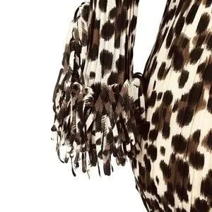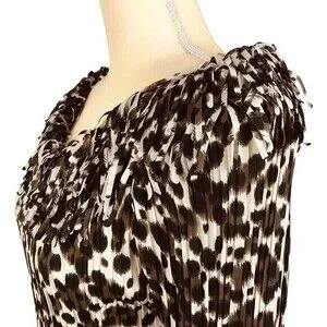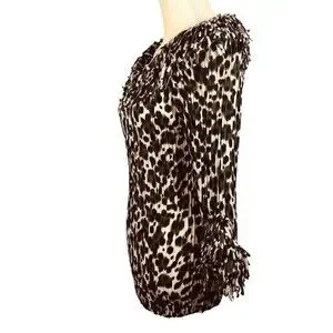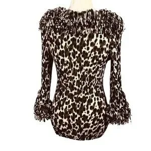 Agora Women's Crinkle Stretch Top with Confetti Fringe Size S 3/4 Sleeve