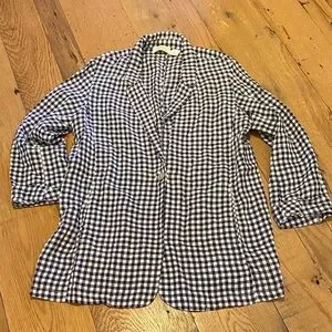 Cynthia Rowley Gingham Linen Jacket Roll Tab Sleeves Navy White Size LARGE