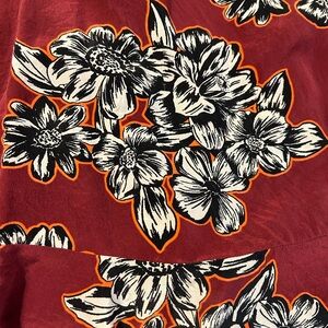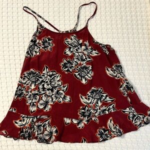 GUC. Burgundy floral silk tank top. Ruffle detail with floral print.