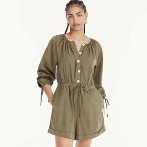 J-Crew Olive Green Cotton Poplin Tie-Sleeve Button-Front Romper Size Small