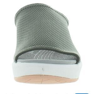Set on a contrasting wedge heel, these Cloudsteppers slide sandals by Clark have a flexible green knit upper for all day comfort and style. Super comfy, slip-on, open toe, 2.5" wedge heel. Bought for myself but alas my days of wearing even a small heel are over. My loss is your gain!