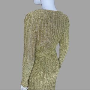 Steve Madden Gold Crinkle Metallic Long Sleeve Midi Dress