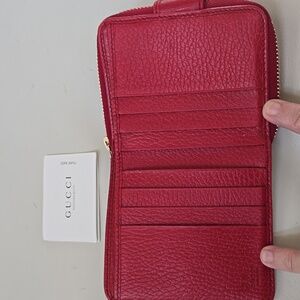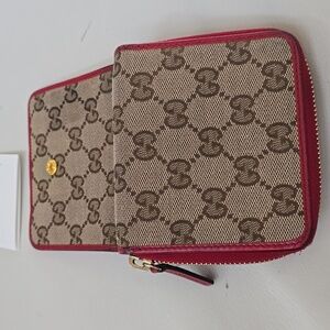Gucci bifold monogram and red leather wallet