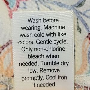~Gentle cold water wash, tumble dry low heat.