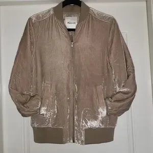Women's Tan Velvet Bomber Jacket NWOT Size XXS