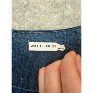 NWT Avec Les Filles Western Portrait-Neck Snap-Front Embroidered Denim Dress