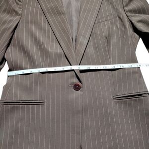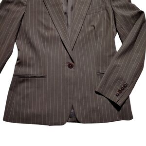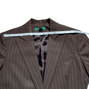 Ralph Lauren Brown w/Cream Pin Stripe Wool Blazer Size 6 Petite