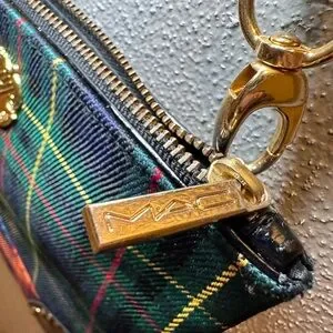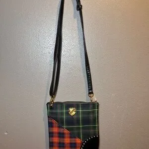 Stylish plaid crossbody bag featuring vibrant colors and elegant gold accents. Perfect for adding a pop of color to any outfit.