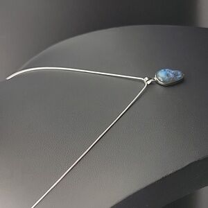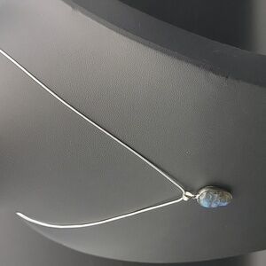 Unique silver plate / labradorite skull pendant with a silver plate snake chain necklace. Perfect for adding a touch of mystery to any outfit.