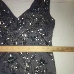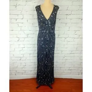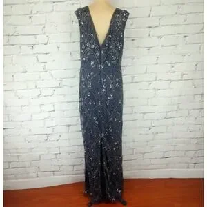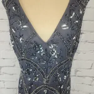 Adrianna Papell Dress Women 12 Beaded Gunmetal Grey Formal Wedding Evening Event