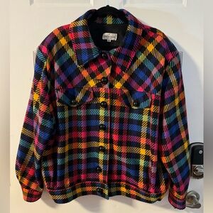 VTG 100% Wool Bright Plaid Button-Up Blazer Jacket Colorful Plus Size 80’s 90’s