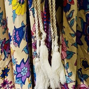 Fashion Fuse Maxi Dress Empire Waist Blue &Purple Peacock Print Boho Whimsy Sz S