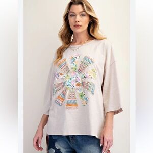 Easel Oversized tee patchwork star sun top shirt boho sz L