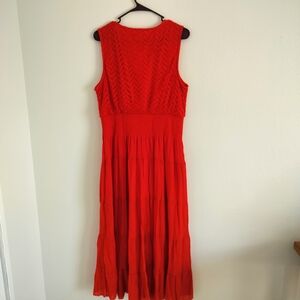 Kings Road Vibrant Red Sleeveless Boho Cottagecore Midi Dress Size XL. Poppy Red