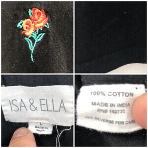 Isa & Ella LARGE Black Short Sleeve Red Rose Embroidered Crew Neck Crop Top