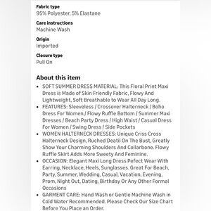 Amazon Brand dress. Never worn other than for Photoshoot. Great condition. Size chart, fabric content, & care labels in pics. Most items in original plastic packaging. PACKAGING is the NWT TAG. Many Amazon brands have no labels on clothing as you probably know. All items from no smoking home. For reference: I am 5’7, 120 lbs,size 2-4. 34B. Wearing size small.