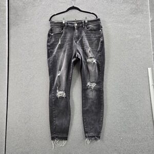 Judy Blue Women Jeans 16W Gray Denim JB84151 Skinny Distressed Slim 28" Inseam