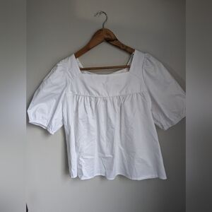 Glamourous White Cotton Scoop Back Bow Tie Short Puff Sleeve Blouse Sz 8