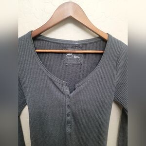 Aerie Henley Gray Long Sleeve Top Waffle Shirt Size LARGE Y2K Bella Swan Ella