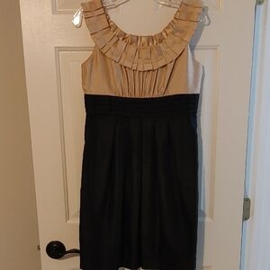 Jessica Howard Black and Gold Pleated Mini Dress Size 6 Petite W/Pockets Formal