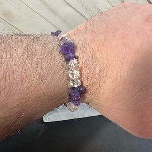 Amethyst & Clear Quartz Chip Bracelet Calming Clarity Healing Crystals | Unisex