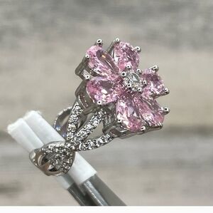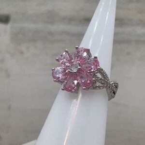 Beautiful Statement Flower Pink White Cubic Zirconia Silver Plated Boho Ring size 6