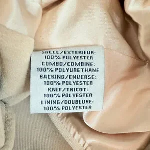 Pre-owned beige BAGATELL COLLECTION jacket, size 2. Features asymmetrical zipper closure and a draped collar. The jacket is made of a polyester blend with a suede-like texture.
