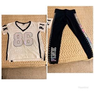 PINK Victoria's Secret White and Black Short Sleeve Tee (Never worn)