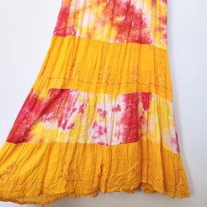 Y2K California Breeze Tie Dye Maxi Dress Tiered Crochetβ Yellow Pink Medium