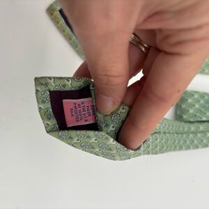 This Vineyard Vines tie features a sophisticated geometric pattern in a rich green hue, crafted from luxurious silk for a refined finish. The subtle tonal contrast adds depth and elegance, making it a perfect accessory for formal occasions. Elevate your wardrobe with this timeless piece that embodies both style and quality. Good used condtion
