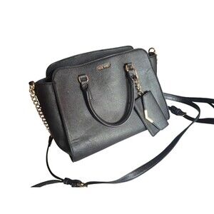 NINE WEST Women's Black Tote Bag Purse And Credit Card Holder Set