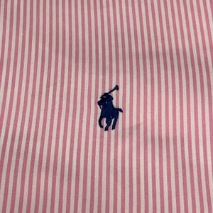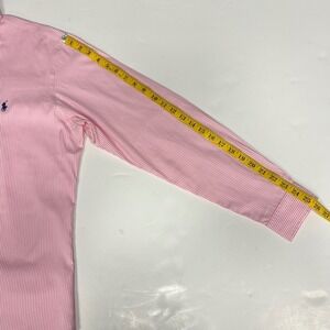 Keywords: Ralph Lauren, dress shirt, men's shirt, button down shirt, pink striped shirt, custom fit, long sleeve, polo logo, classic, formal wear, business casual, size 16, 34/35, men's fashion, preppy