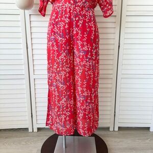 Anthropologie Moon River Red Floral Print Jumpsuit Open Back Wide Leg Size M