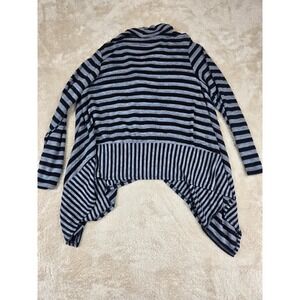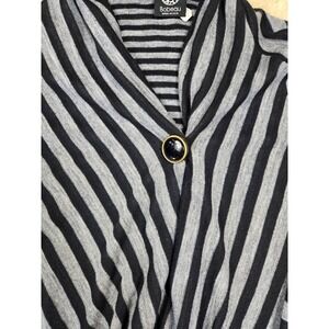 Bobeau Black Gray Stripe Asymmetrical Waterfall Cardigan Sweater Women's L