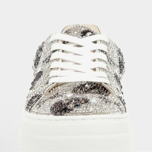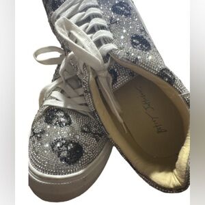 Step out in style with these eye-catching glitter skull sneakers. Perfect for adding a touch of sparkle to any outfit. The sneakers are in like new condition worn twice. All stones are intact. Bottom shows signs of one time where see all photos and review carefully.goth biker maximalism